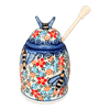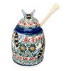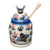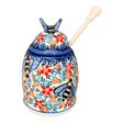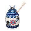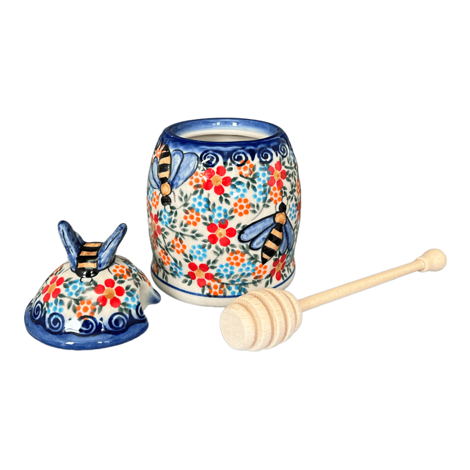 Introducing the enchanting "Meadow in Bloom" Polish Pottery Jar by the illustrious artisan Andy from Boleslawiec, Poland. This delightful 5-inch honey jar isn't just a container; it's a portal to a meadow of vivid dreams! Decorated with a kaleidoscope of red, orange, blue, and green flowers, each design spirals into blue-bordered bliss, reminiscent of a serene, sunlit meadow. The included wooden honey dipper, crafted with the same loving attention to detail, is perfect for drizzling golden sweetness into your tea or over warm biscuits. Whether you're a connoisseur of crafts or a lover of all things sweet, this jar promises to be the crown jewel of your kitchen or a charming centerpiece for your breakfast nook.