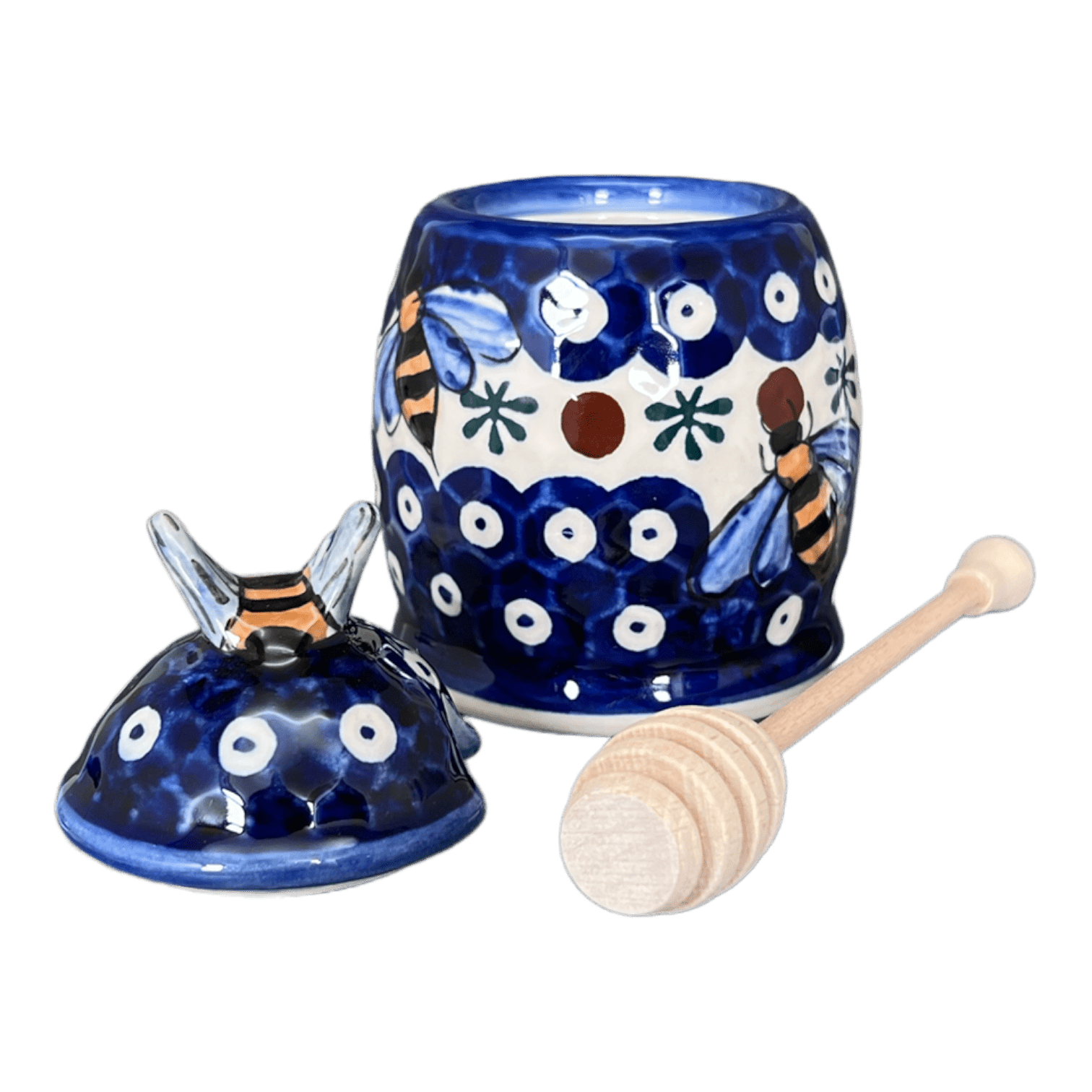 5" tall (with lid), 3.5" tall (without lid), 3" wide Honey Dipper: 6.25" long