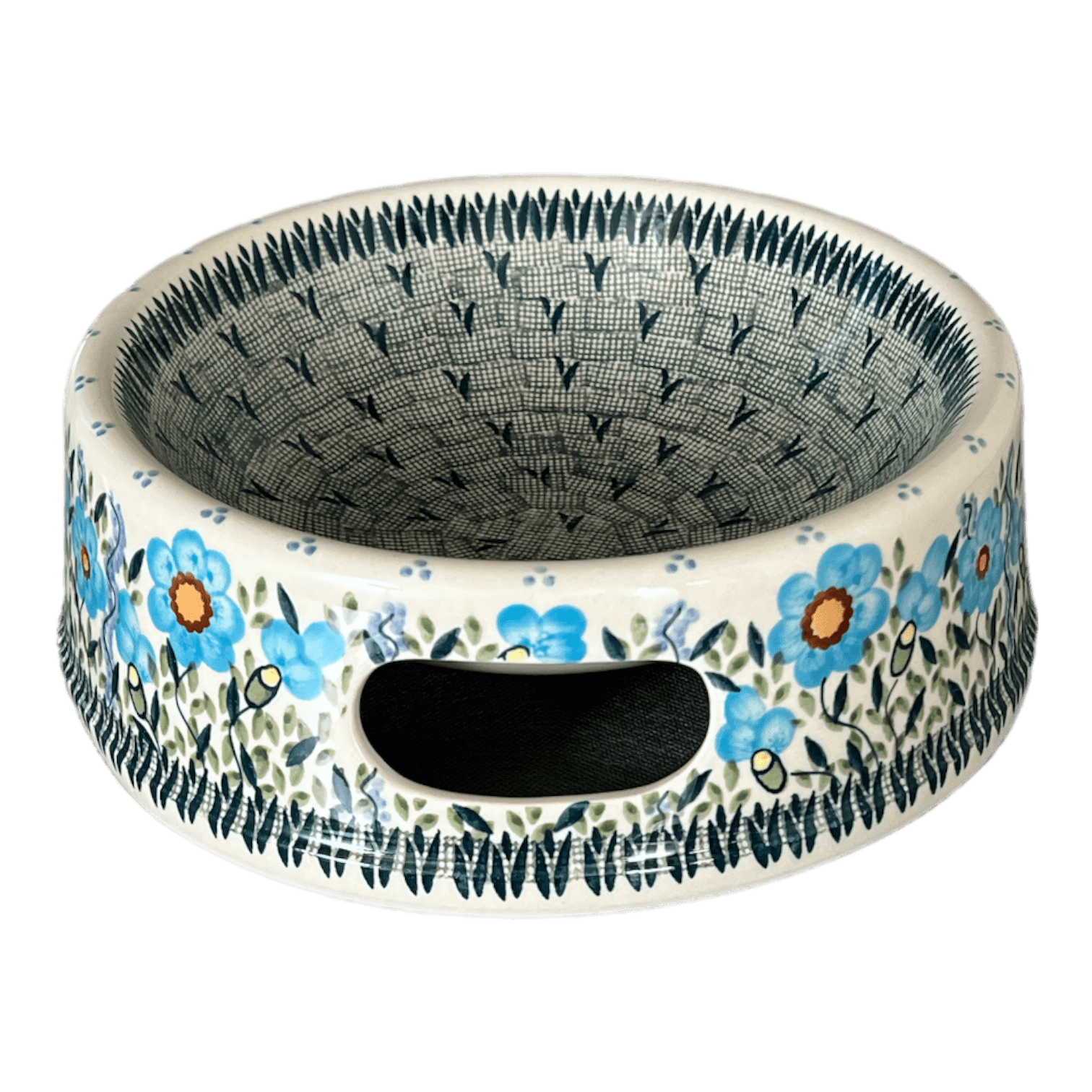 Imagine a bowl that does more than just feed your beloved canine—it enhances their dining experience! Introducing the Polish Pottery Bowl from Manufaktura, a masterpiece that combines practicality with exquisite artistry. This isn't just any dog bowl; it's a work of art in the delightful "Baby Blue Blossoms" pattern. Adorned with large, detailed sky blue and orange flowers set against a crisp white background, each bowl features a ring of teal green leaves and tall grass that seems to whisper tales of lush, serene meadows. Hand-painted by top-tier artists in Boleslawiec, Poland, each piece is a unique testament to the craft of Polish pottery, known for its durability and timeless charm.