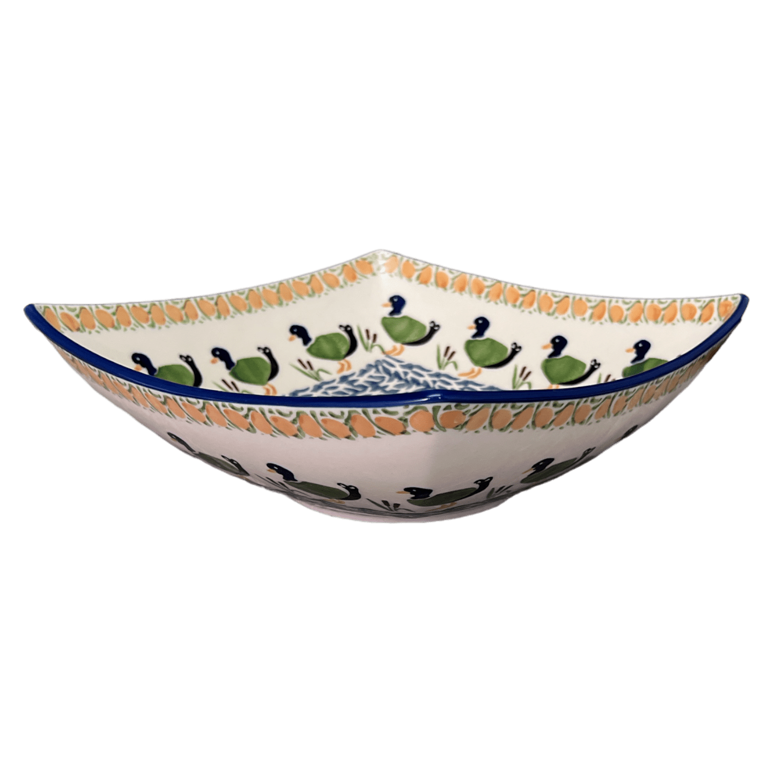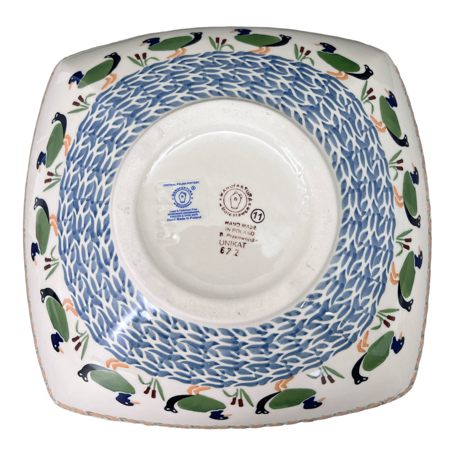 Introducing the Polish Pottery 10.5" Large Nut Dish by Manufaktura in the charming "Ducks in a Row" pattern (P323). This nut dish is not your average dish - it's a work of art that will make your snack time feel like a special occasion. Whether you use it as a centerpiece or as a decorative nut or candy dish, this 10.5" square 'Tall' Nut Dish is the perfect addition to your home.