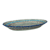 Imagine a dining table graced with the vibrant allure of the Polish Pottery Platter, a masterpiece that not only serves your culinary creations but also stands as a testament to exquisite craftsmanship. Crafted by the esteemed artisans of Manufaktura in the picturesque town of Boleslawiec, Poland, this oval, scalloped platter measures a generous 16.75" x 12.25". It's not just a dish; it's the canvas where the "Sun-Kissed Garden" pattern blooms brilliantly, featuring an enchanting array of flowers in a dance of orange, blue, green, and white hues. The small white flowers nestled against a dark blue backdrop and encircled by a lively band of orange flowers and green grass make each meal a visual feast.