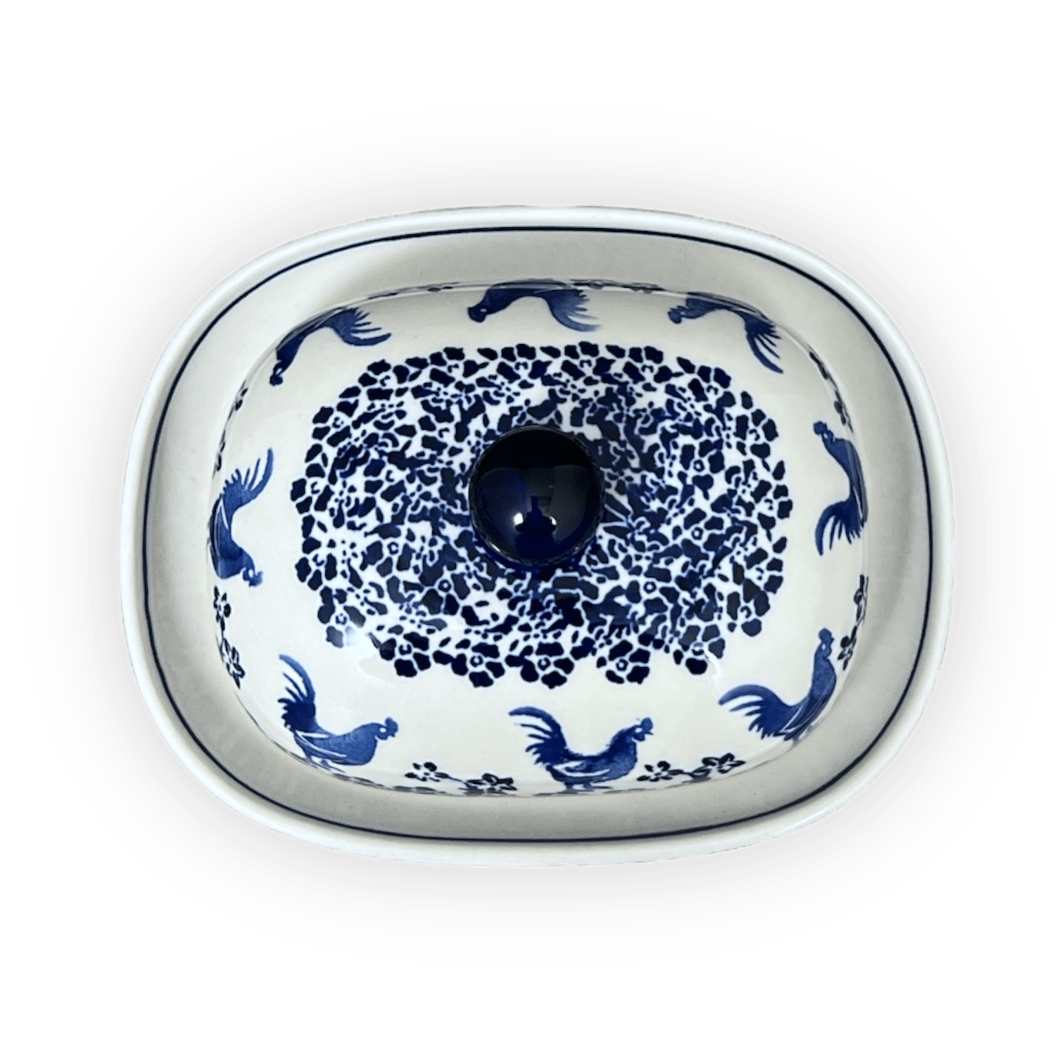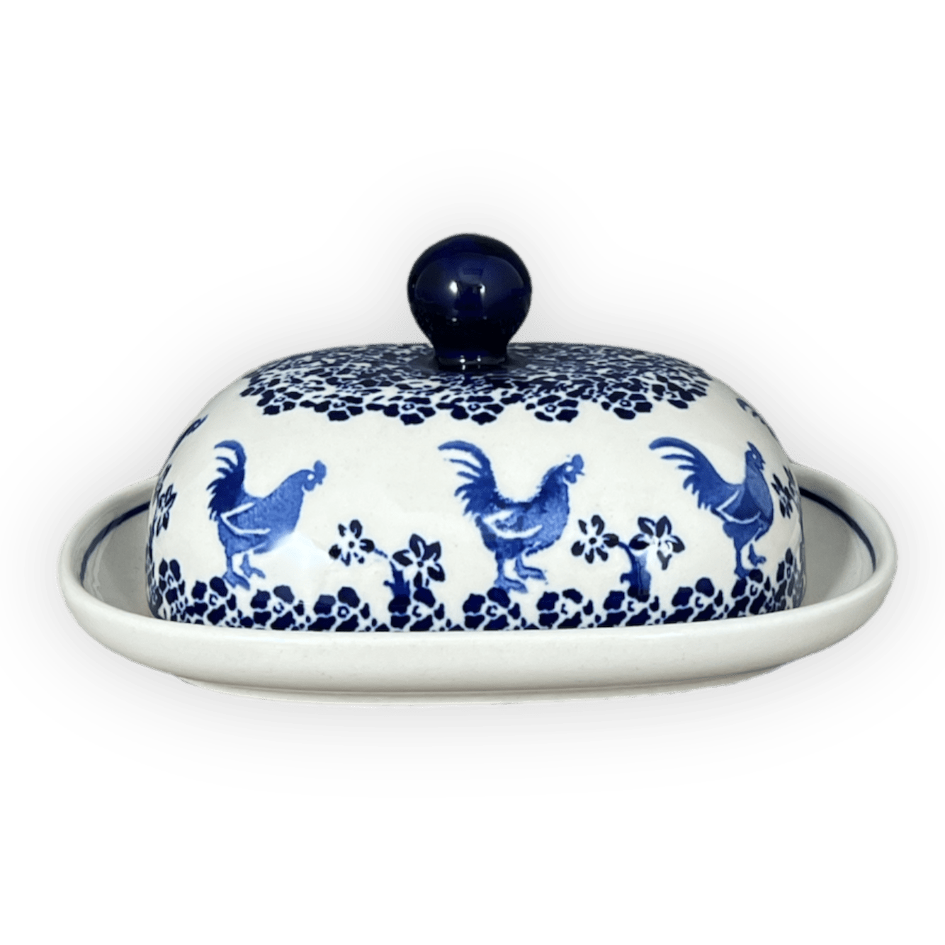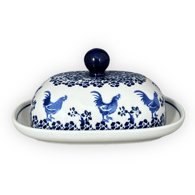 Butter Dish, Large, 6" x 8" in "Rooster Blues" by Zaklady | Y1394-D1149 is backordered and will ship as soon as it is back in stock.