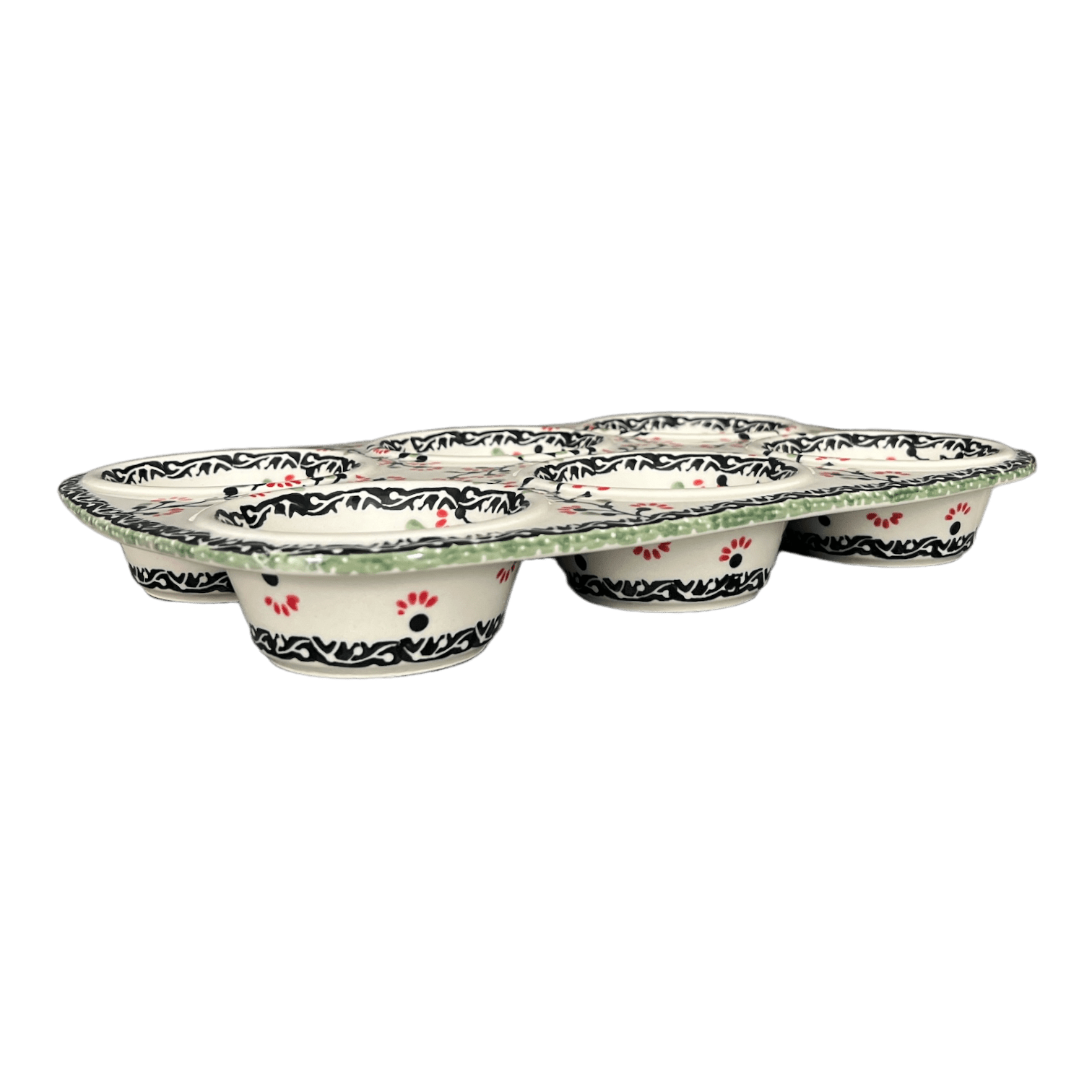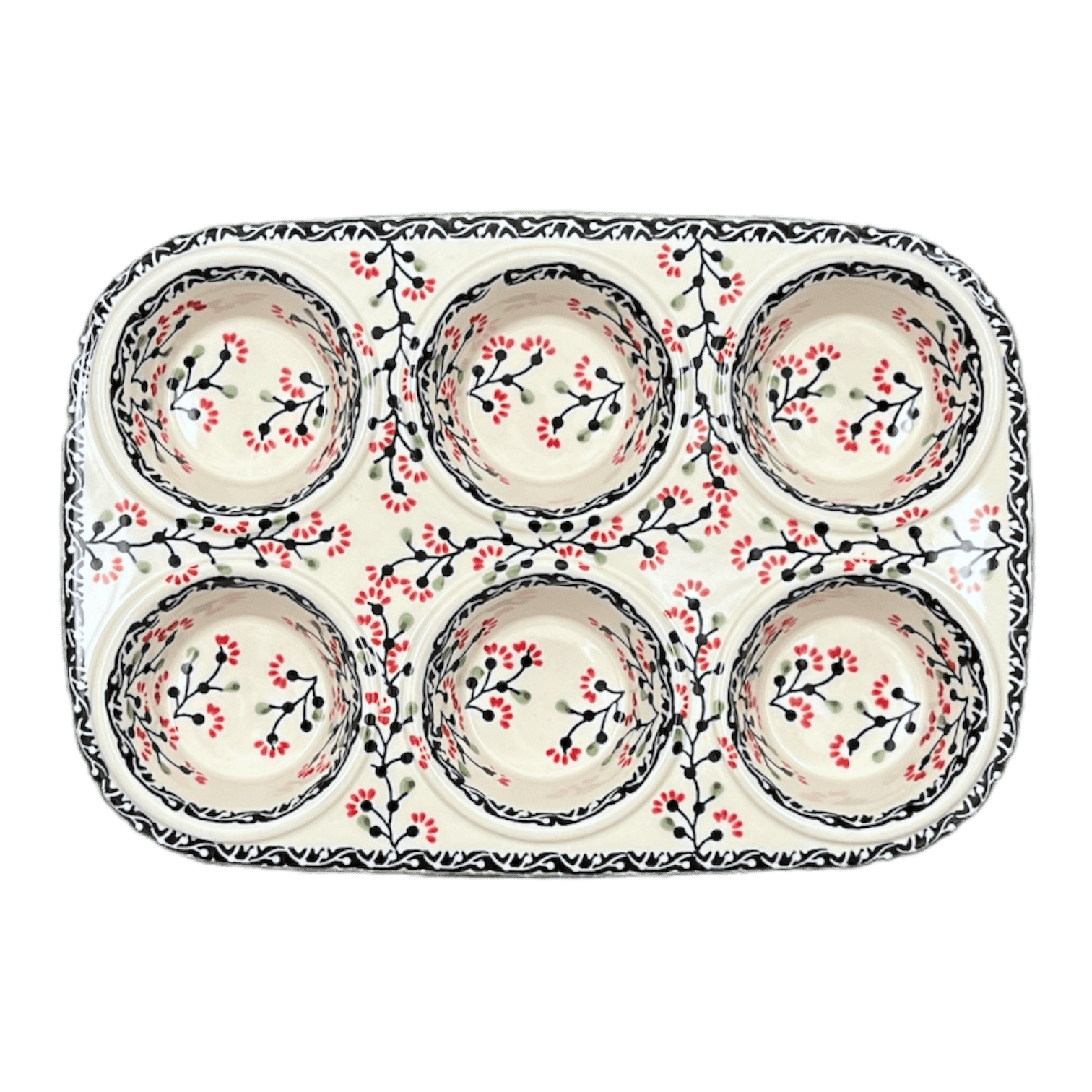 Introducing the Polish Pottery Muffin Pan by Manufaktura in the exquisite "Cherry Blossoms" pattern (DPGJ). But hold on tight, because these muffin pans are not your average kitchenware! Whether you're baking muffins, cupcakes, or individual servings, this muffin pan is about to take your baking game to a whole new level of fun and excitement!