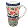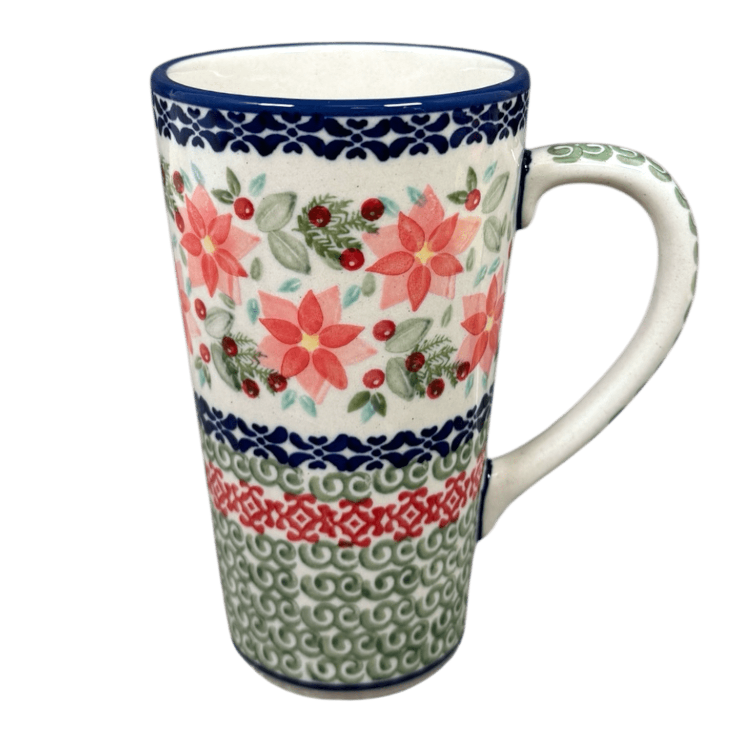 Introducing the exquisite John's Mug from Manufaktura, a masterpiece of Polish pottery that not only elevates your drinking experience but also adds a splash of artistic flair to your kitchen. Crafted in the charming town of Boleslawiec, Poland, this 12 oz beauty stands tall and slim, ensuring your favorite beverages stay warm for longer. The "Pink Poinsettia" pattern is a delightful dance of colors featuring predominantly pink flowers complemented by touches of red, green, and blue - a true symphony of hues that captivates and enchants.