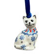 Introducing the charming "Snowflake Love" Polish Pottery Ornament, shaped like an adorable cat, crafted by the renowned artisans at Manufaktura. This petite treasure, measuring a delightful 1.5" x 1" x 2.5", captures the essence of whimsy and winter magic. Decked out in the captivating "Snowflake Love" pattern, it features an array of tiny blue snowflakes playfully dancing on a pristine white background, bordered by a sequence of petite hearts in shades of blue and red. It's not just an ornament; it's a little piece of art that promises to sprinkle a touch of festive charm wherever it's displayed.