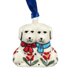 Introducing the enchanting "Snowflake Love" Polish Pottery Ornament by Manufaktura, a delightful piece that promises to bring a whimsical touch to your holiday decor! Measuring a charming 2.5 inches, this handcrafted ornament captures the spirit of the season with its playful puppy dog design set against a wintry canvas of tiny blue snowflakes and a border of petite blue and red hearts. The "Snowflake Love" pattern is not just any design; it's an exquisite example of Unikat artistry, a term derived from the Polish word for "unique." This high level of craftsmanship is evident in the intricate details and rich colors that bring this piece to life, making it a standout addition to any festive display.