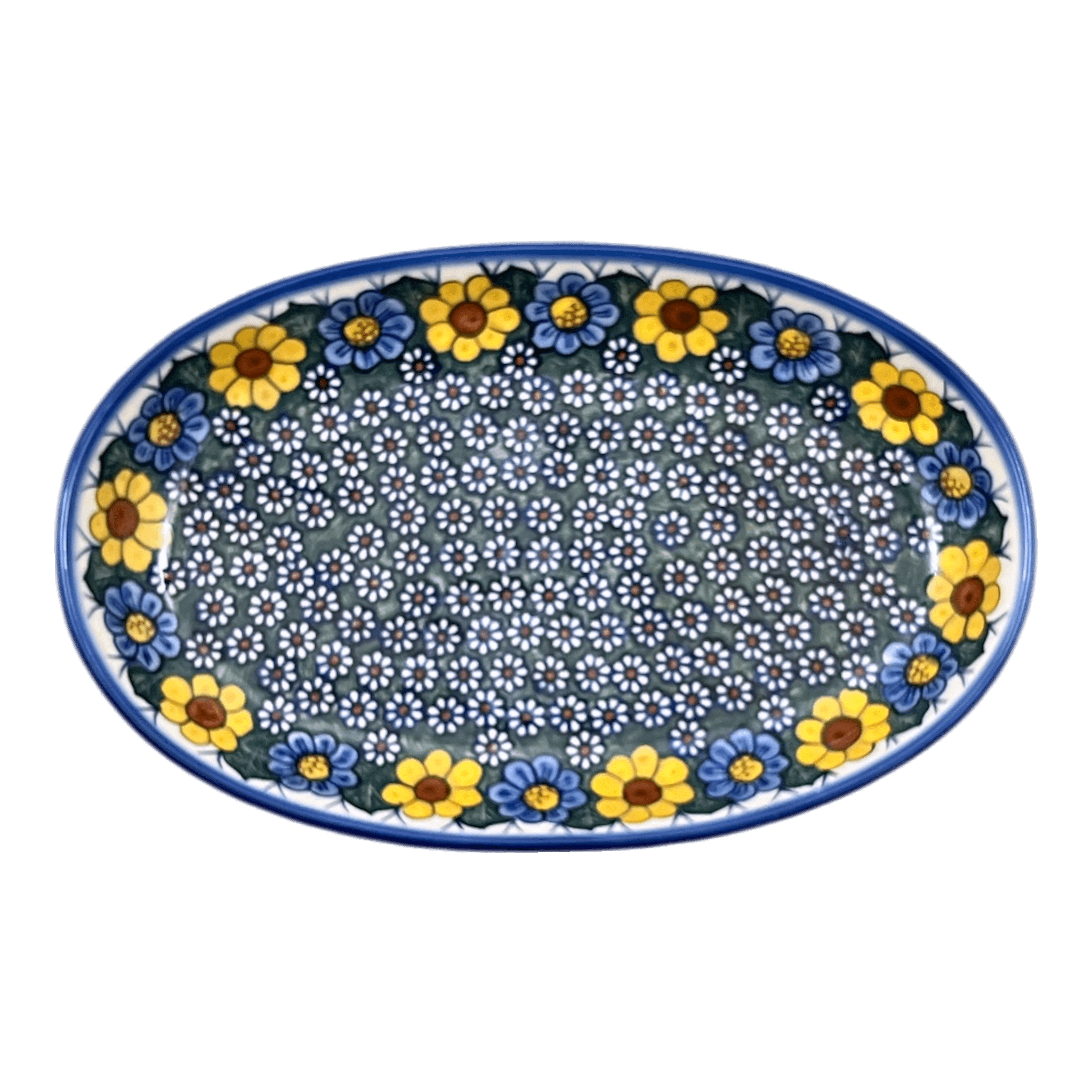 Oval Dish, 8.5" x 13.75", WR (WR13E) in "Daisy Meadow" by W.R. Ceramika | WR13E-BK2 is backordered and will ship as soon as it is back in stock.