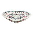 This heart-shaped plate is not only a visual treat but also a testament to the skilled craftsmanship of Polish artisans. Using the traditional "punching" technique of hand stamping, artists create vibrant designs inspired by nature. Despite being categorized under "Traditional" patterns, which are widely recognized and produced, each piece varies slightly, adding a unique charm and character. Measuring 10.25"x9", it's perfect for serving anything from appetizers to desserts, making every meal a little more special.