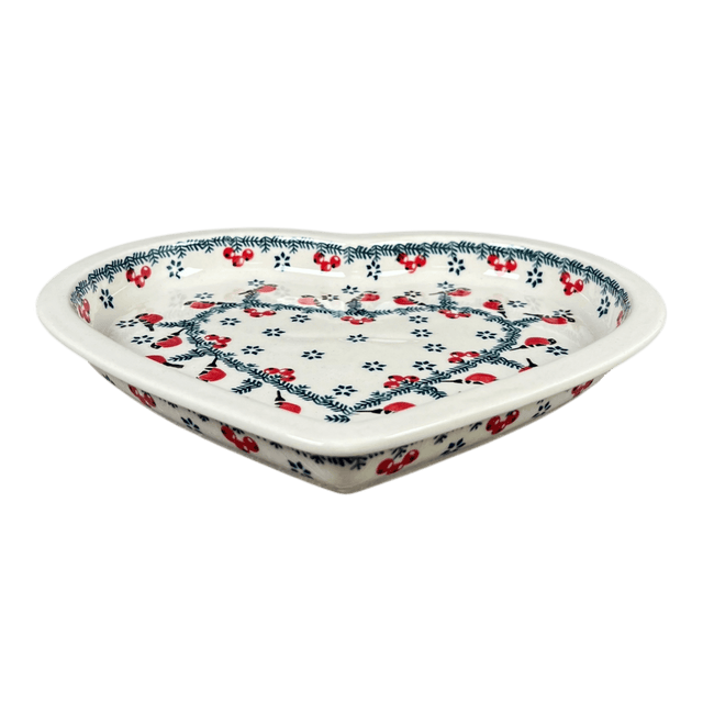 Plate, Heart-Shaped, 10.25" in "Red Bird" by Manufaktura | T118T-GILE