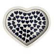 Introducing the enchanting heart-shaped Polish Pottery Plate from Manufaktura, a delightful addition to any table setting. This charming 10.25" plate, adorned with the "Whole Hearted" pattern, captures the essence of love with its playful array of blue hearts set against a crisp white background. Crafted in the storied town of Boleslawiec, Poland, this plate isn't just a dish; it's a piece of art. The traditional technique of hand stamping, known as "punching," allows skilled artisans to bring the vibrant patterns to life, ensuring each plate is uniquely captivating. Whether it's a romantic dinner or a special family meal, this plate is sure to steal the show!