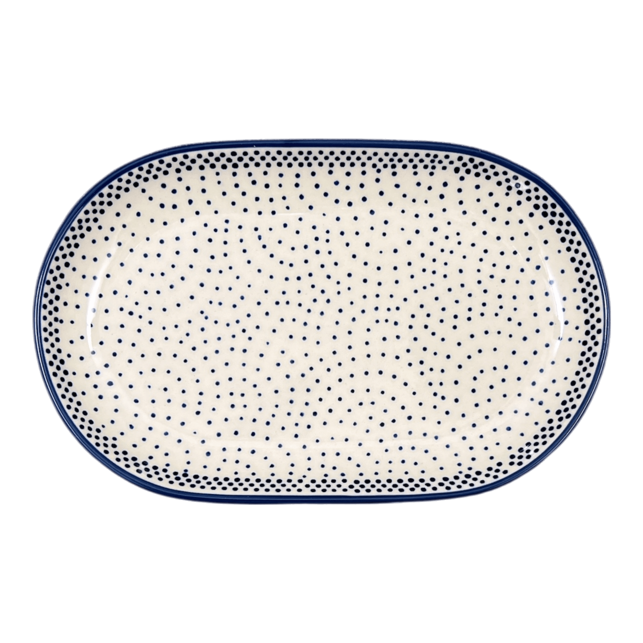 Step into a world where artistry meets practicality with the stunning "Misty Blue" Polish Pottery Plate by Manufaktura. This 6" x 9" oval roaster isn't just a dish; it's a canvas painted with delicate blue dots scattered across a pristine white background. Handcrafted in the heart of Boleslawiec, Poland, this plate exemplifies the unique art form known as Unikat. Unikat, meaning "unique" in Polish, represents a tier of craftsmanship that transforms each piece into a singular masterpiece. The careful attention to detail and the vibrant color palette ensure that this plate isn't just for cooking—it's also a statement piece for your home.