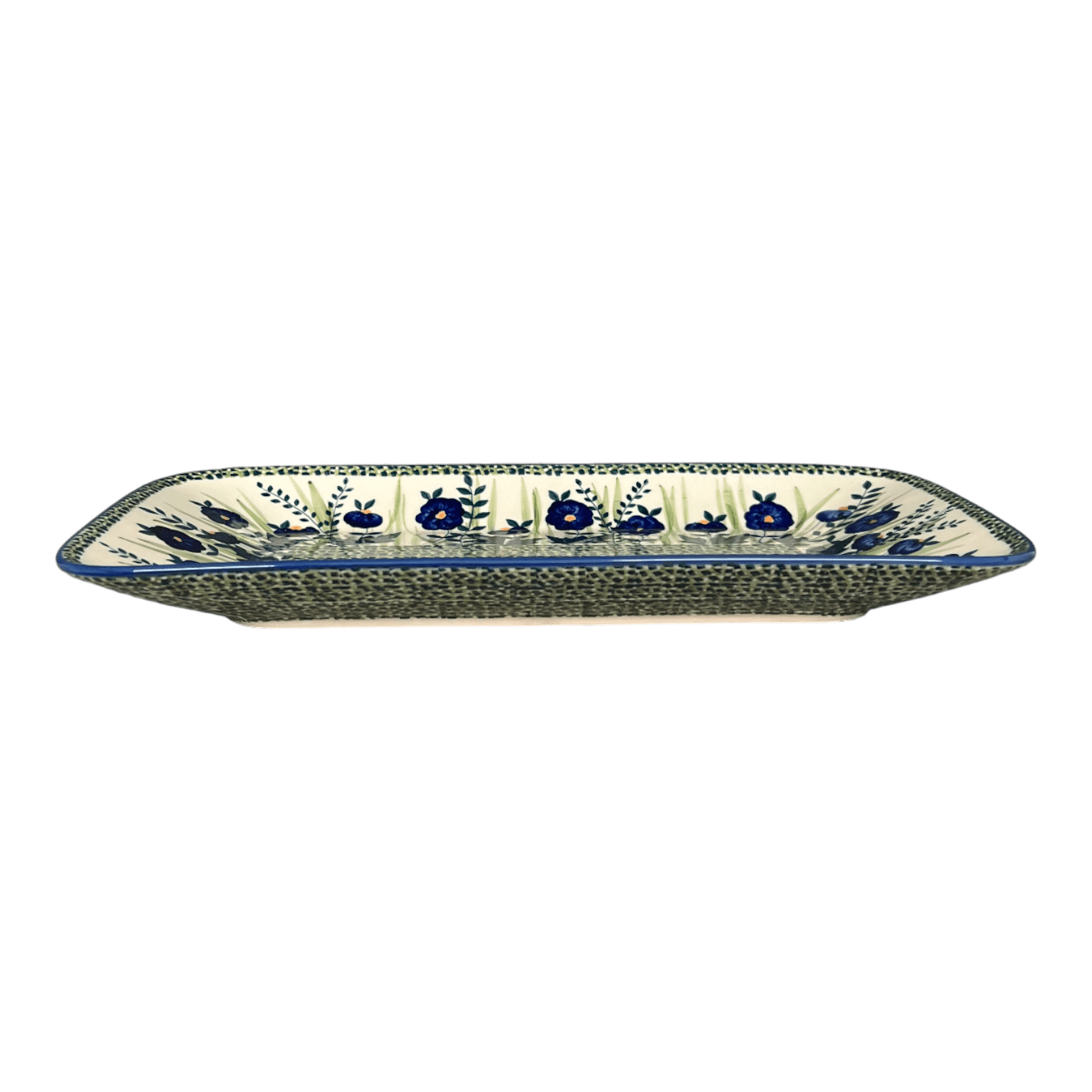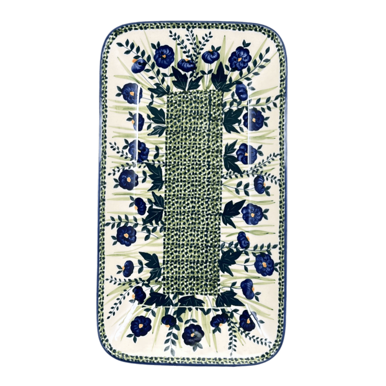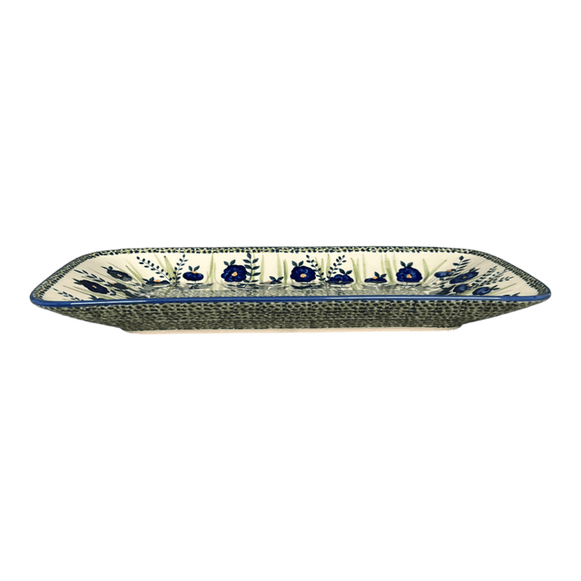 Platter, Rectangular, 14" x 8" in "Bouncing Blue Blossoms" by Manufaktura | P202U-IM03 is backordered and will ship as soon as it is back in stock.