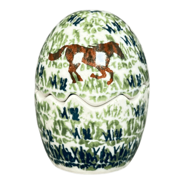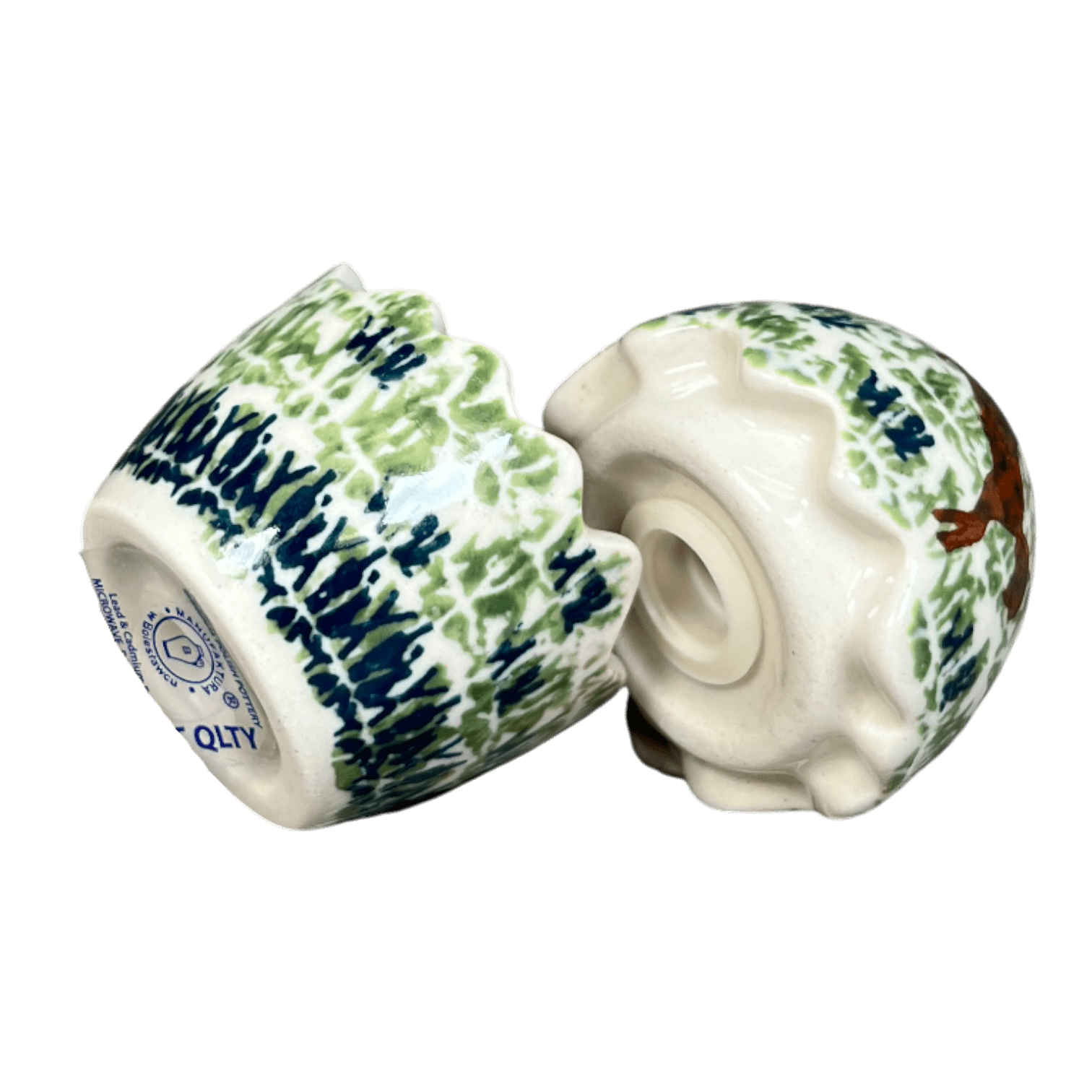 This adorable Polish Pottery Salt and Pepper Egg is a two piece shaker set. Separate while seasoning and recombine for easy storage!