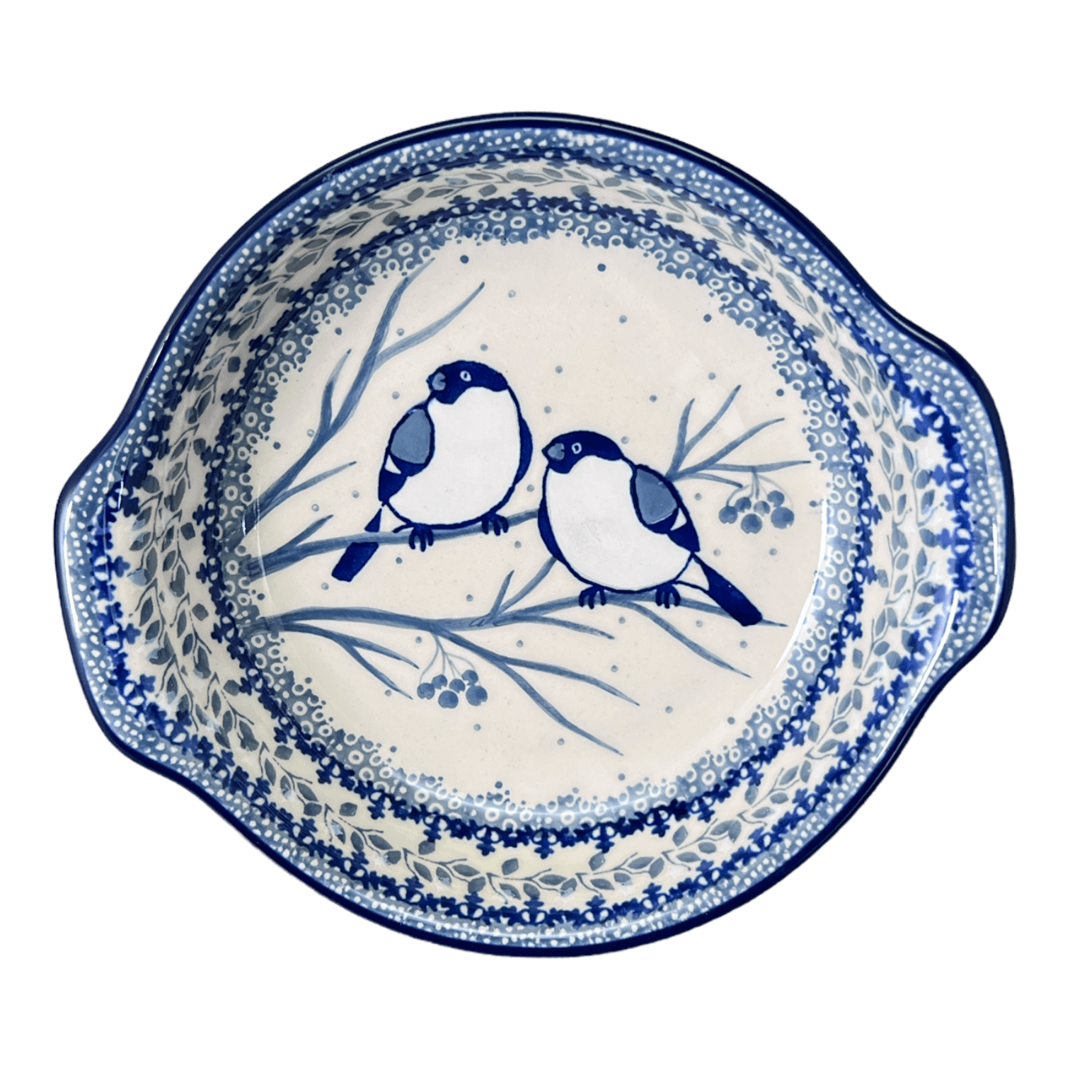 Casserole, Round, Small, 6.5" x 7.25" in "Bullfinch on Blue" by Ceramika Artystyczna | A142-U4830 is backordered and will ship as soon as it is back in stock.
