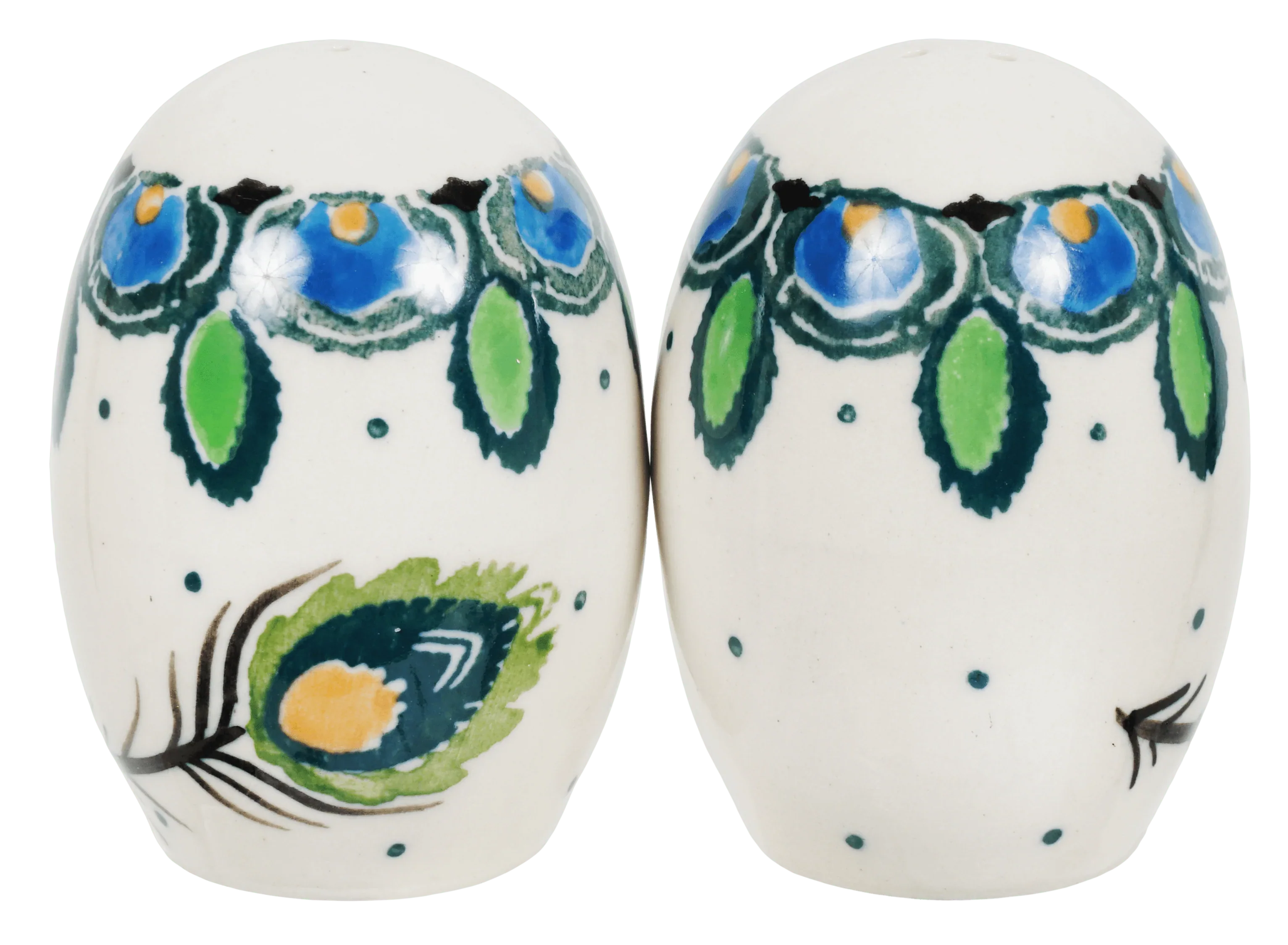 Salt & Pepper, 2" in "Peacock Plume" by Ceramika Artystyczna | A735S-2218X is backordered and will ship as soon as it is back in stock.