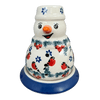 This charming snowman luminary uses the traditional "punching" technique, where skilled artisans hand-stamp each design, ensuring every piece is unique. Despite being categorized under "Traditional" for its recognizable patterns, these luminaries are anything but ordinary. The beauty of Polish pottery lies in its variations—since a large pool of artists contribute to the traditional designs, each piece varies slightly, adding to its special character and charm. Measuring 5 inches tall with a 4.25-inch diameter base, it's the perfect size to cast a warm, inviting glow in any corner of your home.