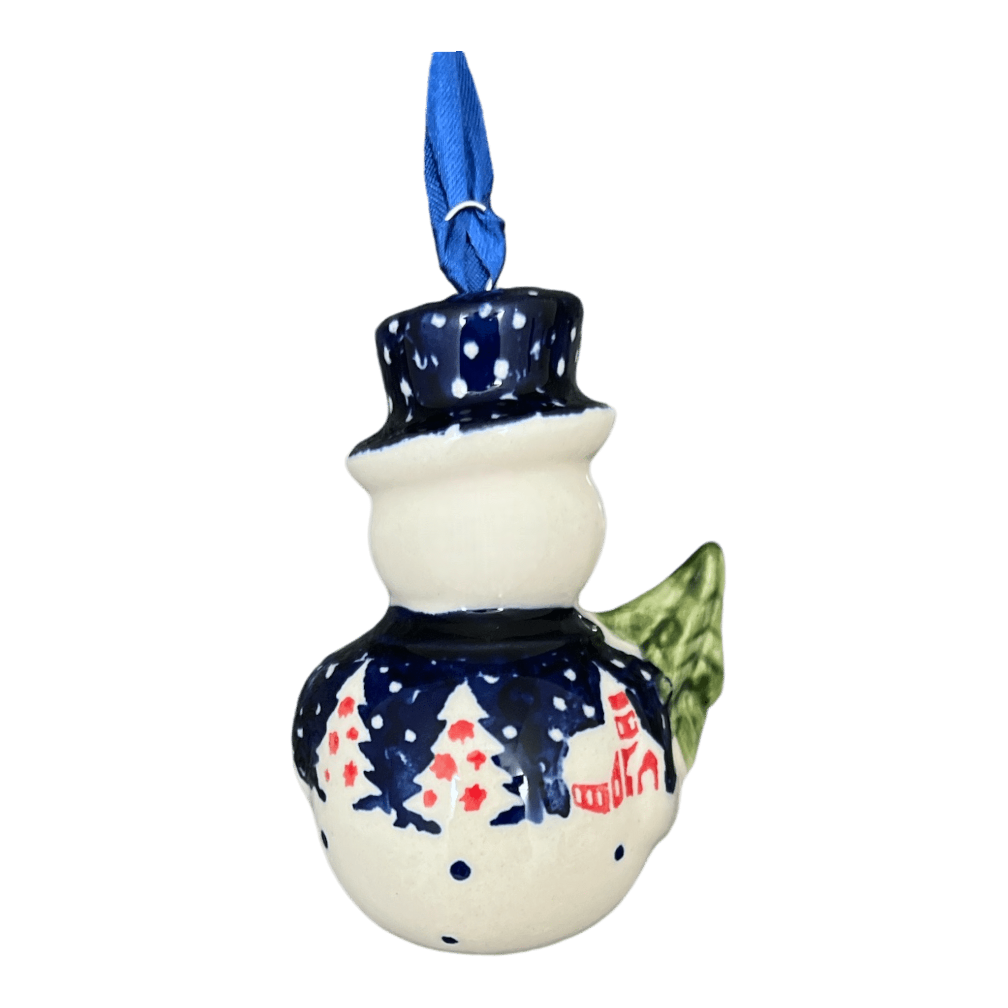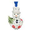 Get ready to celebrate the season in style with the charming Polish Pottery Snowman Ornament by Manufaktura! These handmade ornaments are the perfect addition to your Christmas decor. Featuring the delightful "Christmas Chapel" pattern, these ornaments incorporate design elements that capture the essence of Christmas. The predominant blue color with accents in white and red creates a festive and cheerful atmosphere.