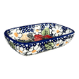 You may safely use Polish pottery in the microwave and in a conventional oven at temperatures up to 425°F. We recommend you heat your stoneware up to temperature with the oven. Make sure to always cover the entire bottom of the dish when baking. For example, you don't want to put a single chicken breast in the center of a baker and leave the rest of the surface area uncovered, as the empty spots will heat at a different rate than those with food on them. Polish pottery does not like quick changes in temperature or uneven heat sources, and thermal shock WILL result in a broken dish.