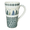 Introducing the enchanting "Pine Forest" Polish Pottery Soap Dispenser, a masterpiece crafted by the skilled artisans of Manufaktura. At a charming height of 7 inches, this hand-painted beauty isn't just a soap dispenser—it's a sprinkle of magic for your sink area! Dubbed "Flu Prevention with Style," it transforms a mundane necessity into an exquisite decor piece. The "Pine Forest" pattern dances with tree and snowflake designs in a lush palette of green, accented with dusty blue and white. Imagine a delicate ring of snowflake-shaped flowers encircling the top and bottom, intertwined with a serene assembly of pine trees and tiny birds fluttering in the background. This piece is not just a soap dispenser; it's a window to a whimsical, wintry forest.