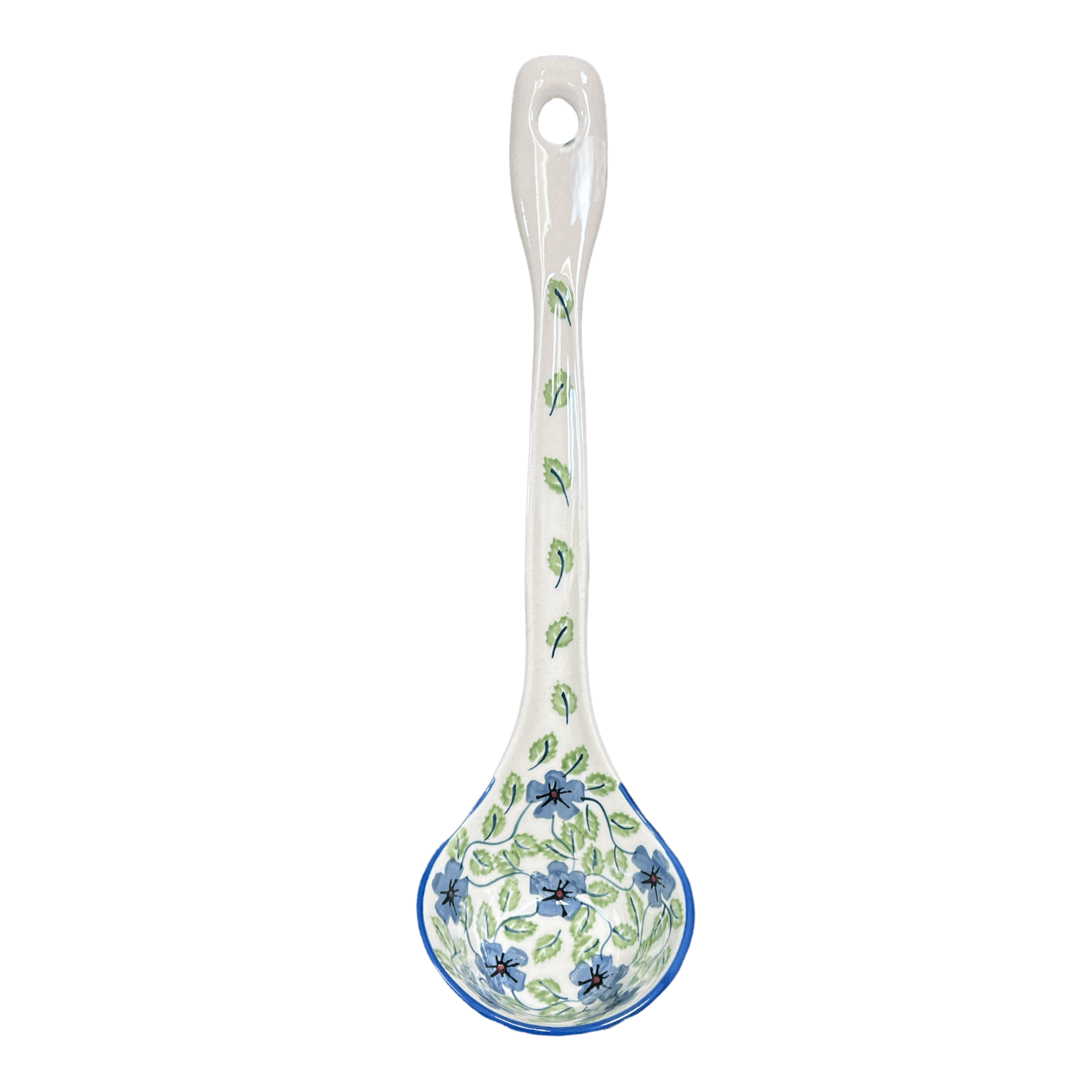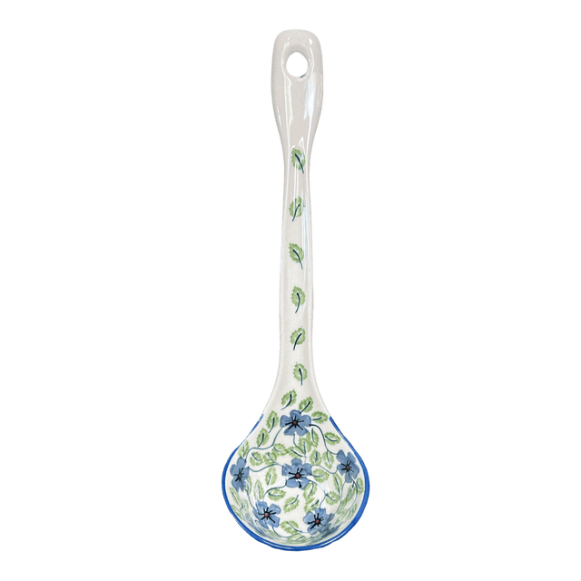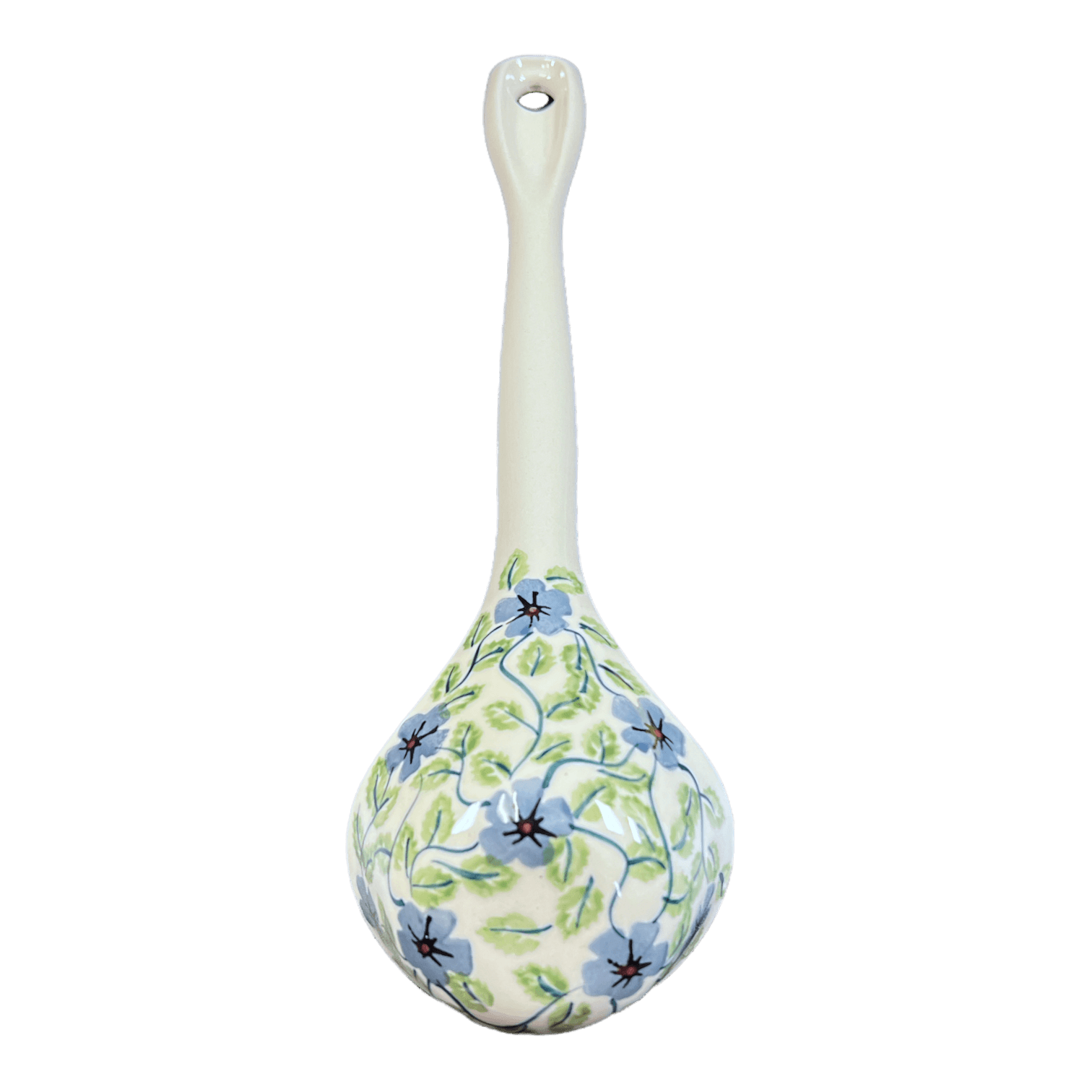 Imagine the perfect harmony of art and utility in one exquisite piece – meet the Polish Pottery Ladle from Manufaktura! Crafted in the enchanting "Periwinkle Vine" pattern, this 12-inch ladle is not just a utensil but a splash of artisan charm for your kitchen. Adorned with delicate light blue flowers, interconnected by teal stems and punctuated with tiny green leaves, this design is painted on a serene white background that promises to steal the spotlight in any kitchen decor. Celebrated as a Unikat piece, it boasts a unique artistic level, featuring intricate details and a vibrant mix of colors that only the most skilled artisans in Boleslawiec, Poland, can achieve.