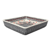 Imagine pulling a pan out of the oven, the aroma of freshly baked brownies wafting through the air, and the sight that greets you is not just mouth-watering food but a masterpiece of art. This is what the Polish Pottery Baker, Square, 8", from Manufaktura offers. Crafted in the vibrant "Carnival" pattern, it turns your everyday baking into a festive celebration. The pattern is a kaleidoscope of colors, predominantly blue with playful splashes of pink and green, featuring intricate geometric designs and charming floral motifs. This baker isn't just a kitchen utensil; it's a piece of tradition from Boleslawiec, Poland, renowned for its high-quality, hand-painted pottery.