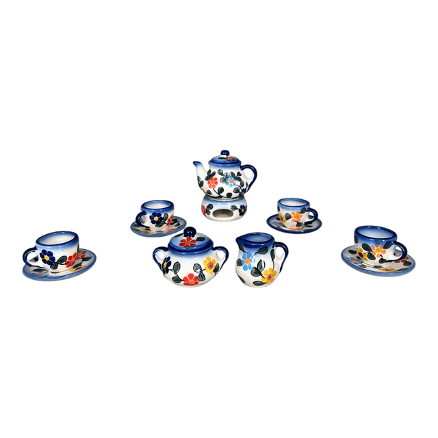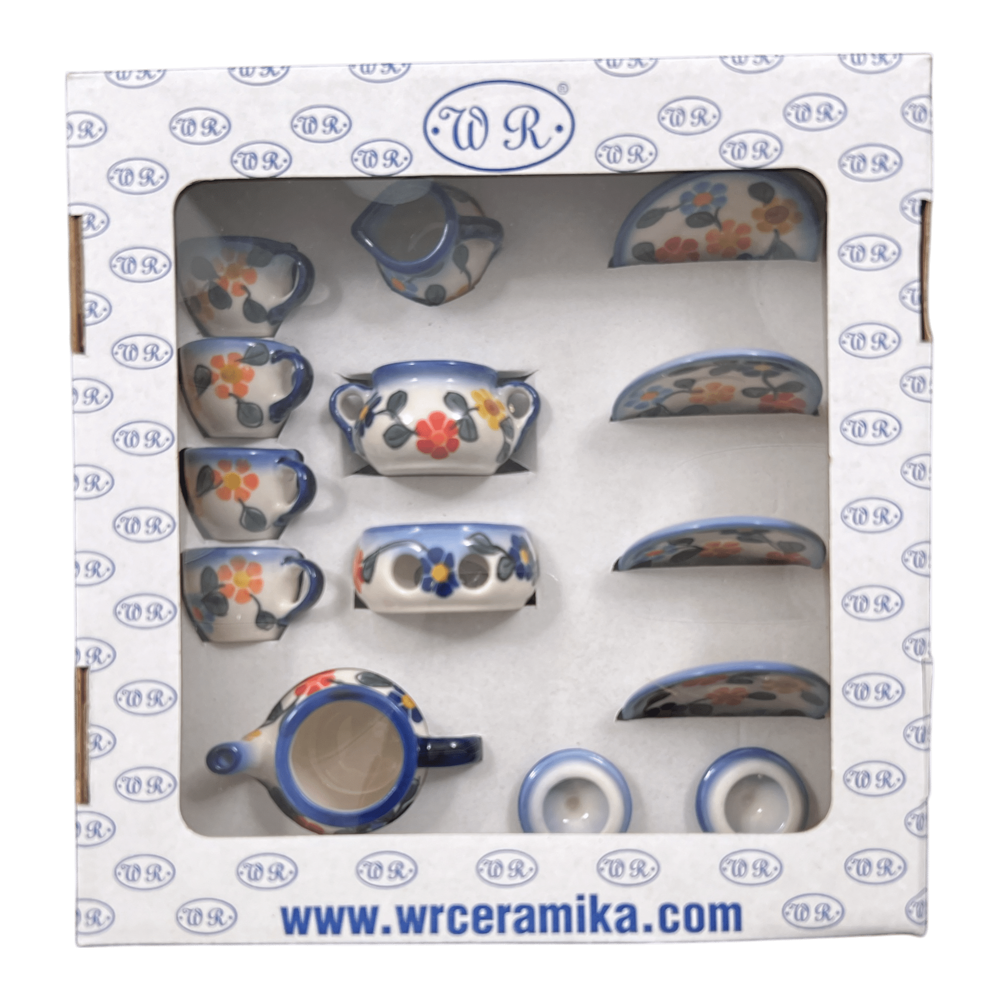 These adorable miniature sets from W.R. Ceramika include a teapot, warmer, sugar bowl, creamer, four teacups, and four saucers. Perfect for playtime with your little ones, or as a beautiful decoration!
