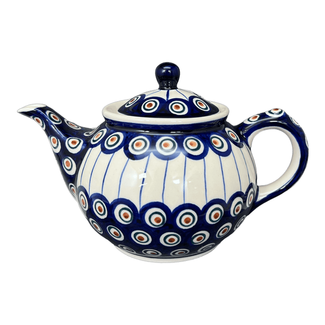 Introducing the Polish Pottery 0.7 Liter Teapot by Manufaktura in the captivating "Peacock in Line" pattern (54A). This teapot is not just any ordinary teapot - it's the perfect size for tea for two! With its stunning design and vibrant colors, this teapot is sure to warm your heart and brighten your day.