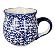 Featuring the captivating "Blue Canopy" pattern, this mug showcases a stunning combination of leaves and flowers in a predominantly blue color, with delicate accents in white and red. The intricate design is a testament to the skilled artisans who hand-paint each piece in Boleslawiec, Poland. Every sip from this mug is like a journey to the heart of Polish craftsmanship.