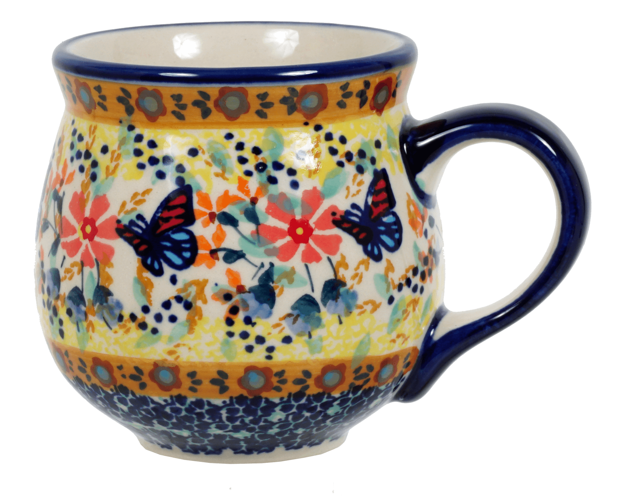 Mug, Belly Mug, 10 oz Medium in "Butterfly Bliss" by Manufaktura | K090S-WK73 is backordered and will ship as soon as it is back in stock.