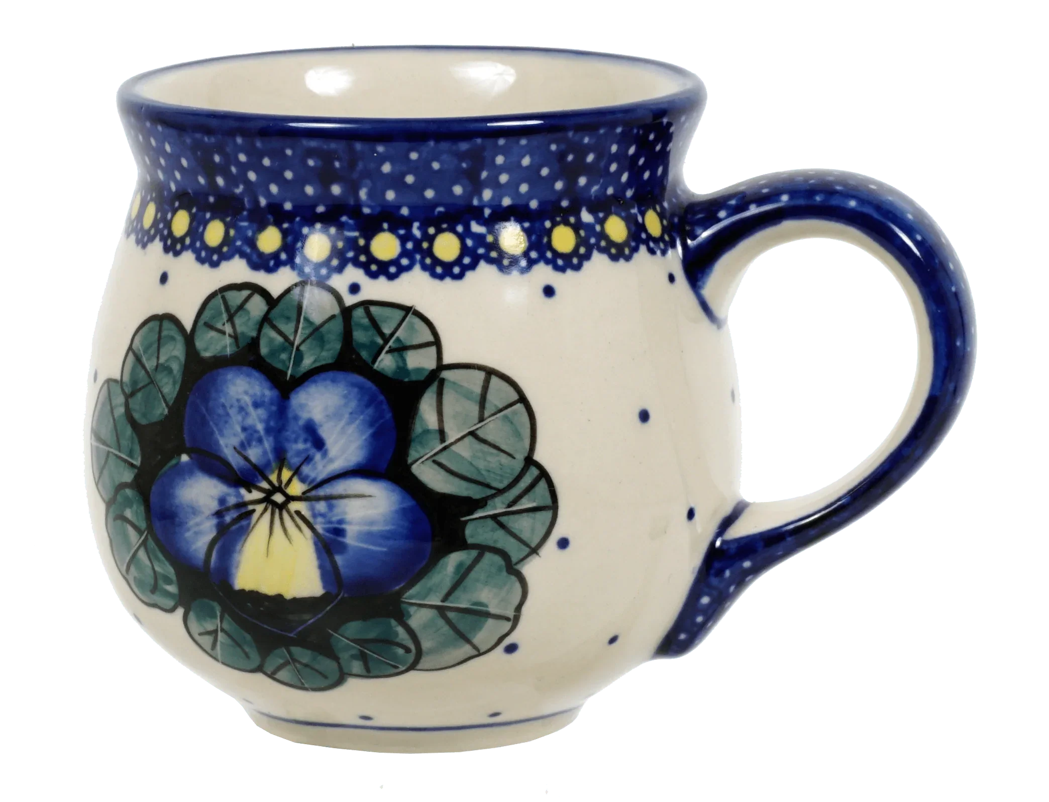Mug, Belly Mug, 10 oz Medium in "Pansies" by Manufaktura | K090S-JZB is backordered and will ship as soon as it is back in stock.