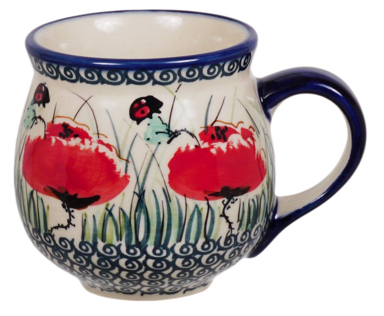 The 10 oz. Medium Belly Mug is the perfectly shaped coffee cup. Starting your day with a belly mug in an exquisite Polish pottery design jump-starts your day on a high note!