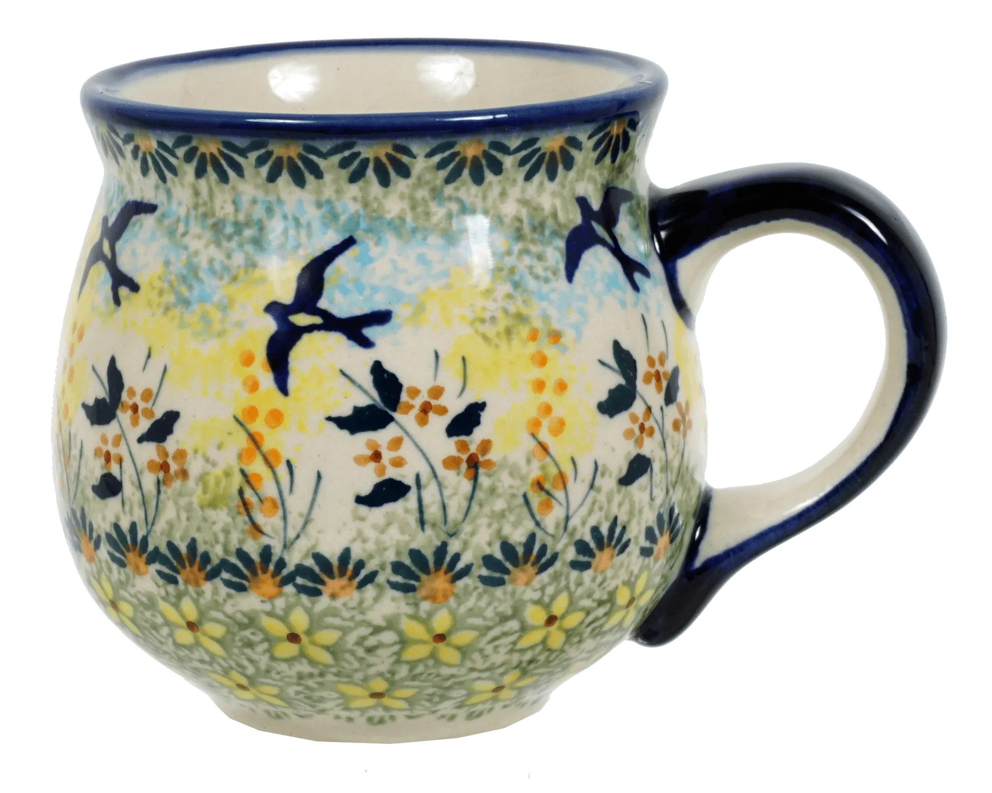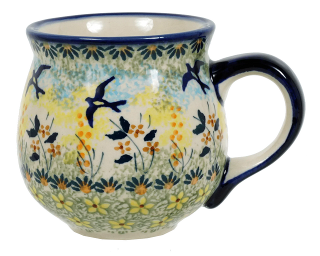 Mug, Belly Mug, 10 oz Medium in "Soaring Swallows" by Manufaktura | K090S-WK57 is backordered and will ship as soon as it is back in stock.